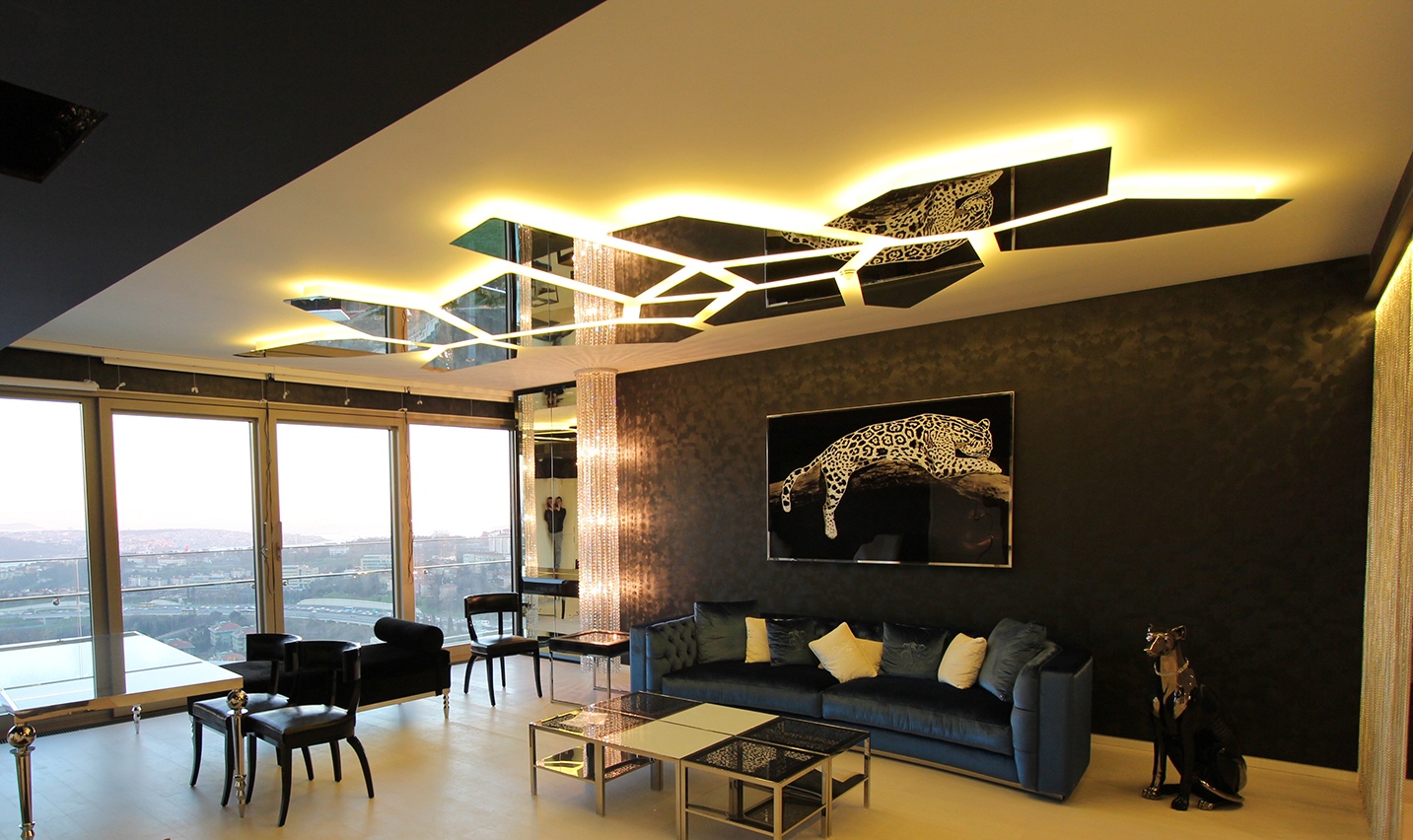 Основные черты конструктивизма – это присутствие каркасных, решетчатых форм, преобладание геометрических правильных фигур (квадрат, круг, треугольник), деление на клетки. В цветовой гамме данного стиля основой является металлик белый. Орнаменты полностью отсутствуют, следовательно, все поверхности всегда однотонные. Определенная монотонность конструктивизма сглаживается благодаря наличию сложных осветительных систем.
