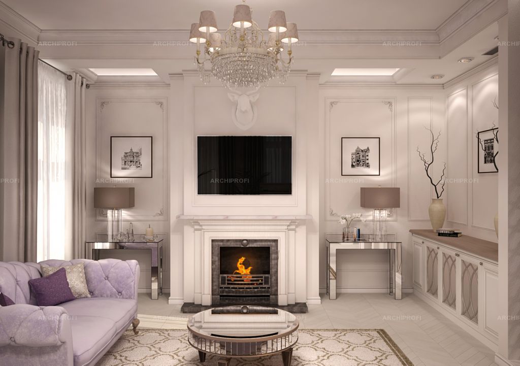 Сиреневая гостиная в классическом стиле