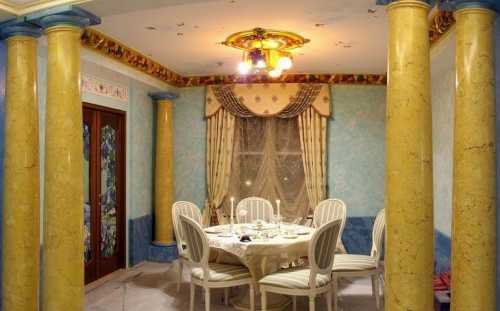 ΠΠ½ΡΠ΅ΡΡΠ΅Ρ Π² ΡΡΠΈΠ»Π΅ Π±Π°ΡΠΎΠΊΠΊΠΎ ΡΠΊΡΠ°ΡΠ΅Π½ ΠΊΠΎΠ»ΠΎΠ½Π½Π°ΠΌΠΈ Ρ Π·ΠΎΠ»ΠΎΡΡΠΌΠΈ ΡΠ·ΠΎΡΠ°ΠΌΠΈ