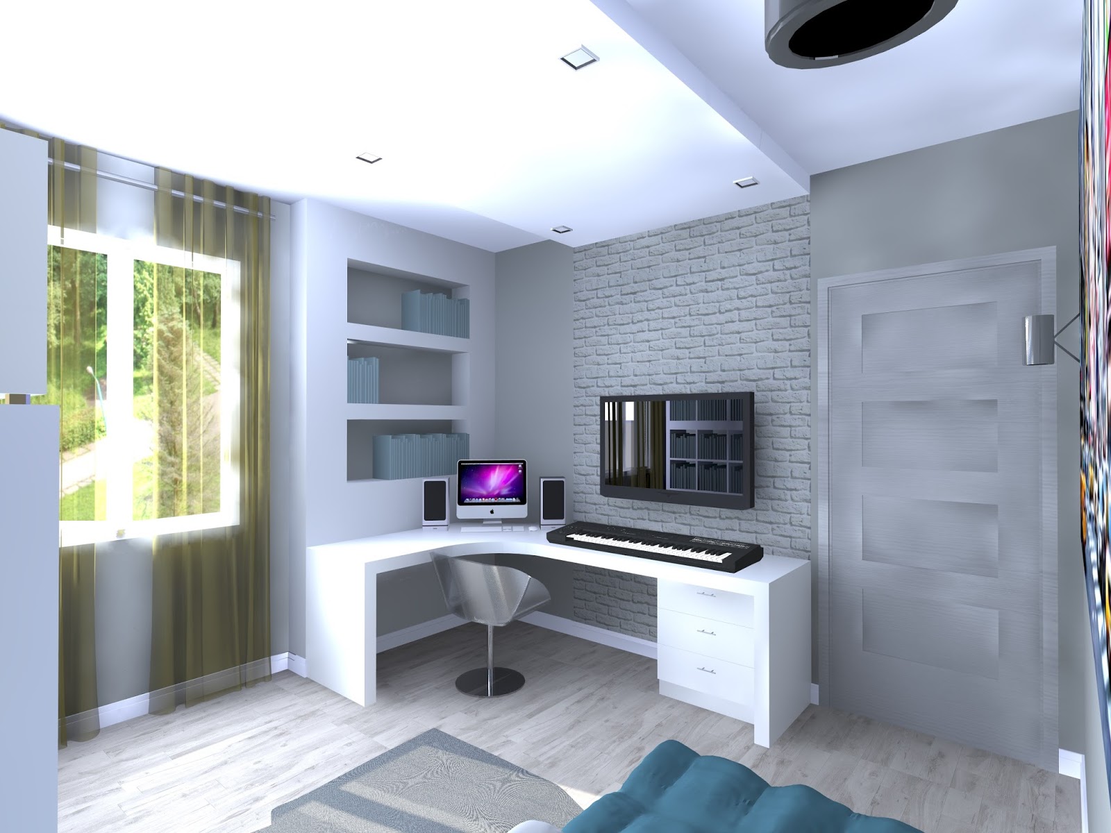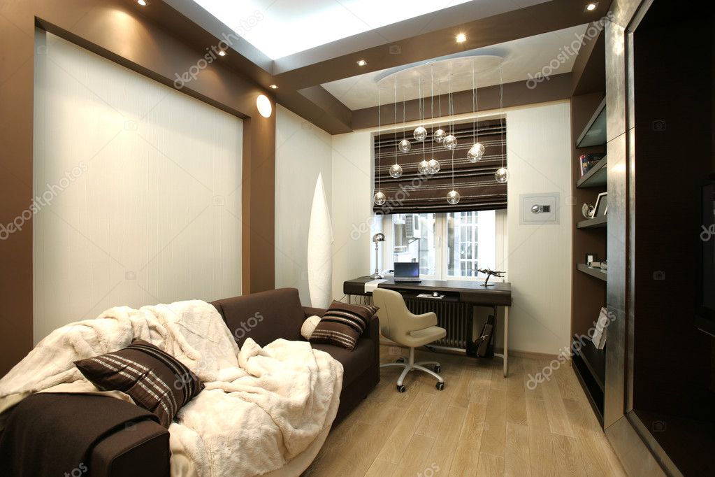 Как уже было сказано в предыдущем разделе, дизайн квартиры для парня должен включать в себя рабочую зону. В студенческом возрасте она нужна для учебы, а когда человек работает, то с большой вероятностью бывают периоды, когда работу приходится брать домой, а выполнять ее за обеденным столом или на диване неудобно.