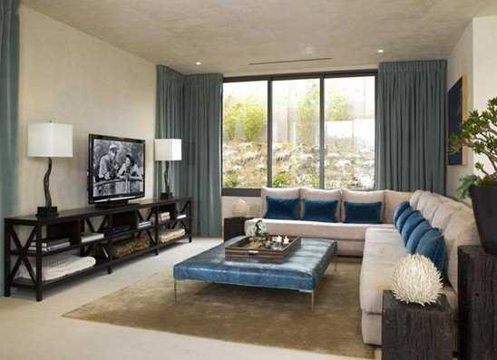Чтобы создать стиль Контемпорари в гостиной, стоит соблюдать правила открытого и чистого пространства. Мебель правильной геометрической формы. Стекло и хромированные элементы в декоре помогут Вам в оформлении пространства. Чтобы внести яркости и жизни в интерьер, добавьте немного какого-то драматического произведения искусства. Кроме того, отличным акцентом станет абстрактный ковер на полу. Напольное покрытие должно быть из натурального дерева. Это поможет создать иллюзию пространства. Бросьте на этот пол яркий ковер, чтобы создать уютный уголок для отдыха и бесед.