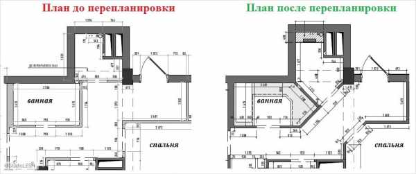 Кардинальные изменения по перепланировке затронули ванную комнату, санузел и прихожую. За счет неиспользуемого места были расширены ванная комната и санузел, что позволяет поставить не только ванну, но и душевую, а также увеличить шкаф для стиральной машинки и установить небольшую раковину.