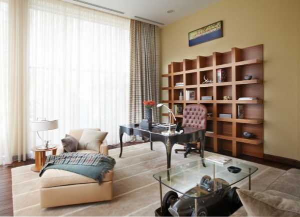 На фото: Стиль контемпорари в дизайне интерьера гостиной и кабинета