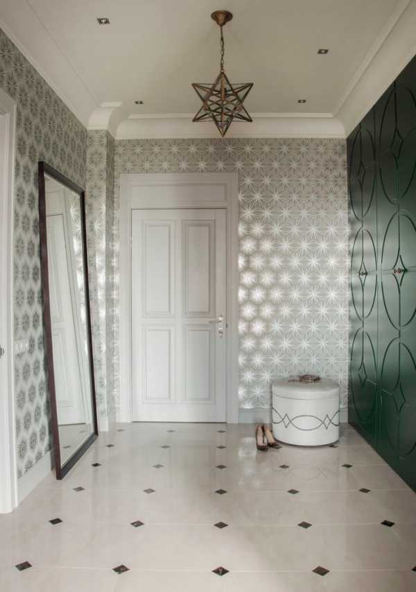 Освещение в стиле может быть многоуровневым (верхний свет от люстры, настенные бра и напольное освещение) с автоматическим управлением. На кухне важна дополнительная подсветка над рабочим столом, а в прихожей нижний свет выглядит необычно.