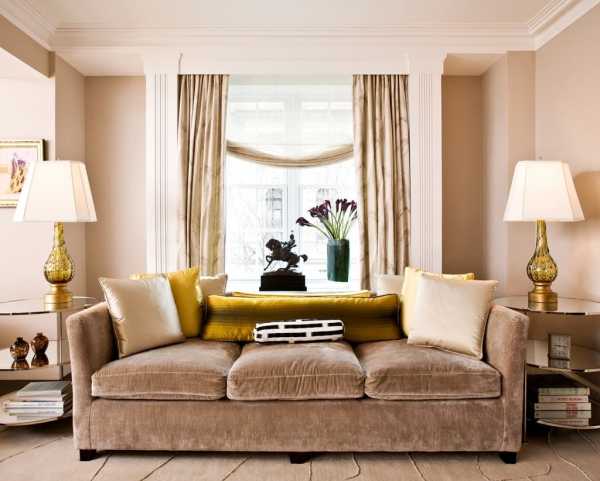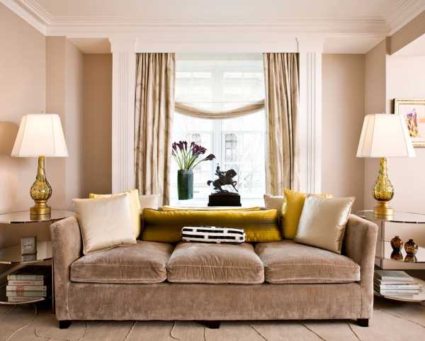 Покрывала, подушки, обивка и шторы должны подходить друг другу и не выбиваться из единого стиля контемпорари.