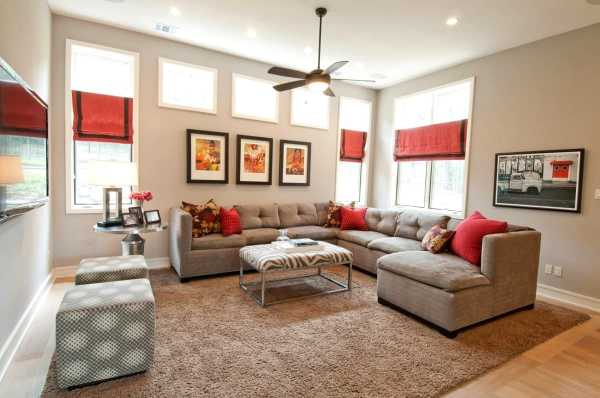 В гостиную стиля контемпорари подбирают максимально простую и функциональную мебель, линии горизонтальные и отсутствует показная роскошь. Для отделки используют стекло, пластик, металл и декоративный камень. На фоне нейтральных цветов всегда присутствует цветовой акцент на картинах или в мебели. В большом зале мебель располагается группами, чтобы сохранить пустое пространство.