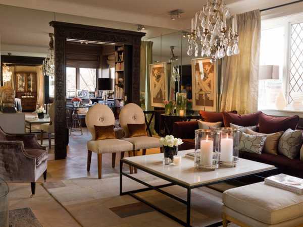 Хромированная отделка в мебели и светильниках — особенно в ванных комнатах и кухнях. Потому что это также помогает создать очень современный и стильный вид. А также не забываем про стекло, которое широко используется многими дизайнерами интерьеров.
