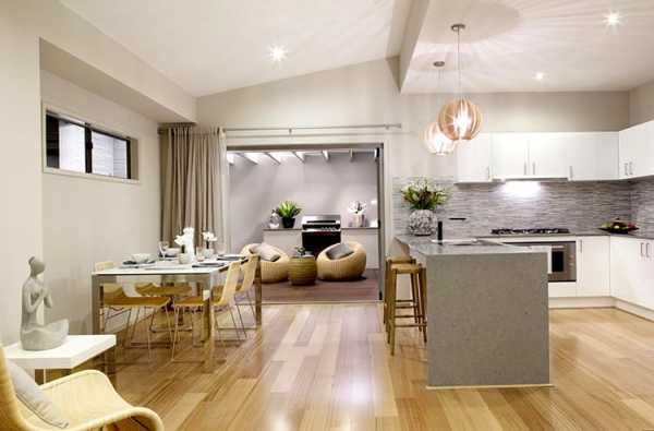 В современном доме кухня контемпорари чаще всего объединена с гостиной или коридором, в интерьере кухни в квартире также отдают предпочтение объединению комнат или минимальной загруженности гарнитуром.