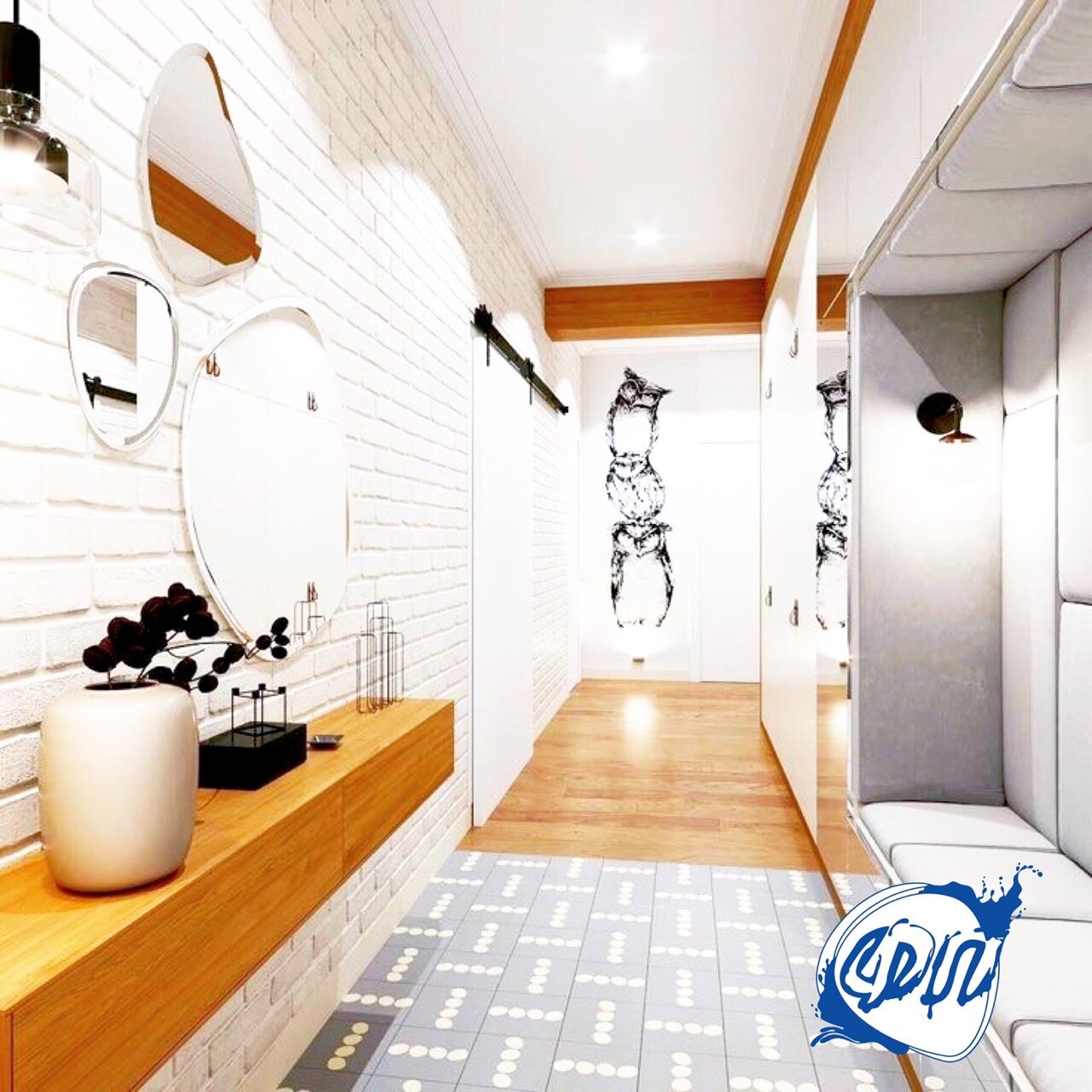 Здесь должно быть не менее уютно и комфортно, чем в остальных комнатах. Посмотрите на коридор не как на пространство помогающее попадать вам из комнаты в комнату, а как на полноценную жилую площадь, превратив его в настоящий арт-объект и заставив выполнять целый набор дополнительных функций.