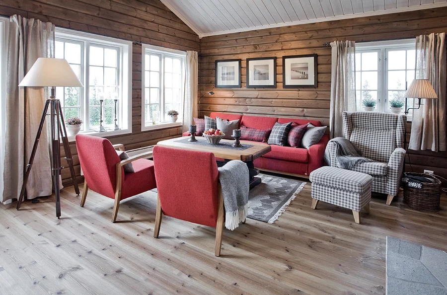 Дерево в отделке может быть и крашеным, и натурального цвета. Английский деревенский стиль — это про элегантность, винтаж, насыщенную природную палитру. В русском деревенском стиле стены, как правило, бревенчатые, либо имитируется форма бревен. Лучше выбирать соответствующий вид вагонки. - Скандинавский. Белая или слегка осветленная крашеная вагонка в интерьере на стенах, полу или потолке отлично подойдет к лаконичному и уютному скандинавскому стилю.