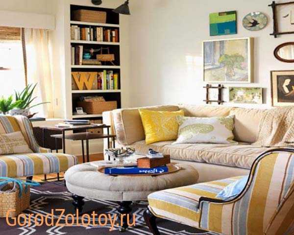 - Подушки можно разложить не только на диване, но и на креслах, на полу.