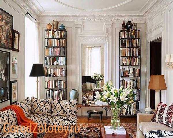 Сравните два стеллажа, на одном из которых стоят вазы и статуэтки, а на другом – книги. Какой из них «дышит» жизнью? Конечно же, второй! Так и хочется подойти, провести руками по корешкам, выбирая чтиво по душе, а потом устроиться в любимом кресле с книжкой и чашкой ароматного чая… Классическая картинка уютного вечера!