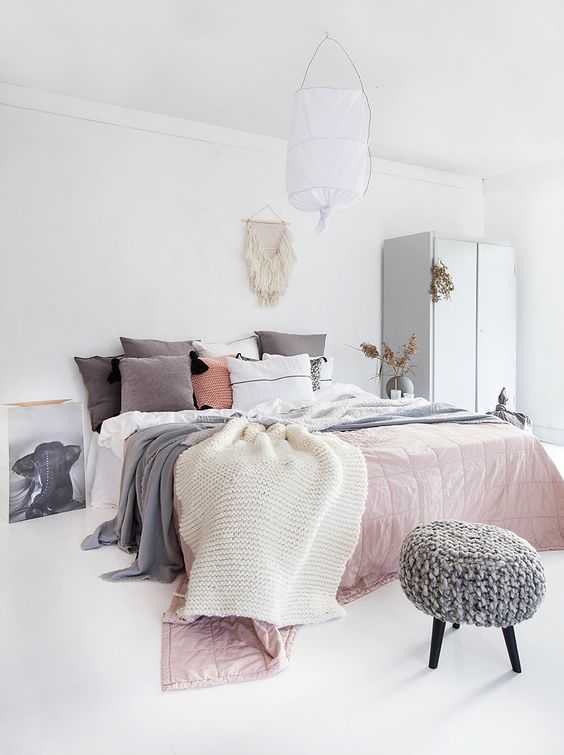 Мягкие ткани, успокаивающие и элегантные узоры, стильные ткани и аксессуары для украшения ручной работы с вышивкой или аппликациями, вязанные крючком и трикотажные изделия привносят уют в дизайн небольшой комнаты и создают стильную, но расслабляющую и спокойную атмосферу.