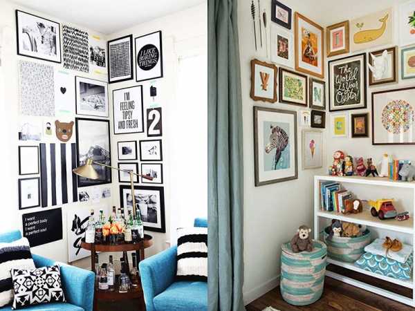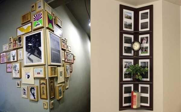Оригинальное оформление углов рамками с фото и картинами