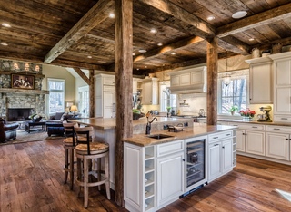 Выбор окон, дверей, перекрытий, напольных покрытий, каминов — ключ к дизайну всего сооружения. В деревянном доме это наиболее актуально для кухни. Больше, чем любая другая часть дома, кухня подвергается дополнительным нагрузкам от различных источников — тепла, влажности, пролитых жидкостей, изменения освещения, интенсивности охлаждения.