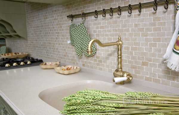 Для кухни прованс подойдет столешница из массива дерева или искусственного камня (акрилового или агломерата). Можно отделать рабочую поверхность керамической или керамогранитной плиткой небольшого формата. Если кухня недорогая, подберите пластиковую столешницу с декором под дерево или камень или столешницу из ДСП с натуральным шпоном.