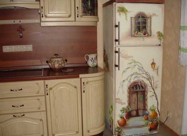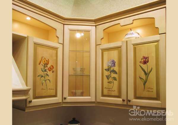 Иногда дверцы кухонных шкафов расписывают цветочными узорами.