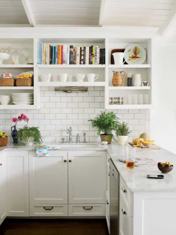 Прованс любит открытые полки — для посуды, баночек с крупами и специями, мелкой кухонной утвари и красивого декора. Но в городской квартире будьте готовы часто вытирать с них пыль.