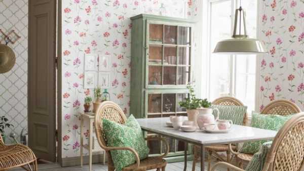 Обои и текстиль следует подбирать с мелким цветочным принтом.