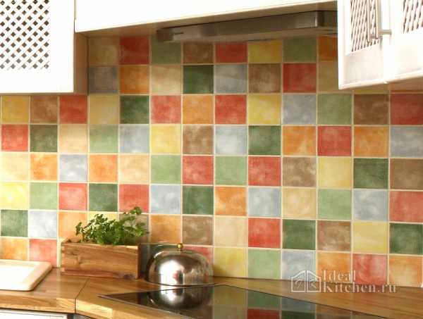 Красивый фартук получится из узорчатой плитки пэчворк — разноцветной маленькой плитки с разными рисунками.