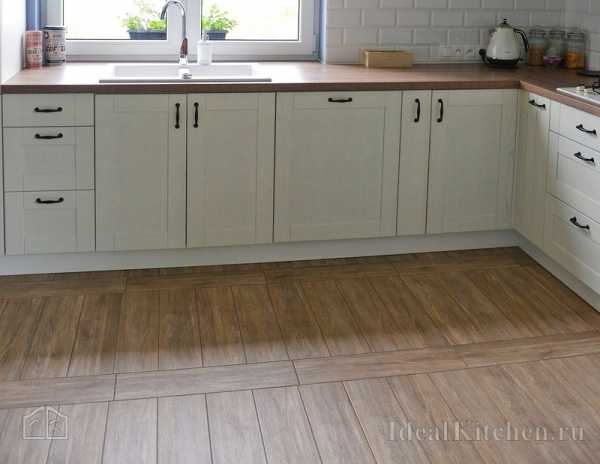 Керамическая плитка и керамогранит под дерево или камень — вариант более практичный, но не забудьте сделать систему теплого пола. Отлично смотрится на кухне состаренная плитка под камень и терракоту, с потертостями и трещинками, характерными для прованса. Именно такие полы можно увидеть в старых французских домах.