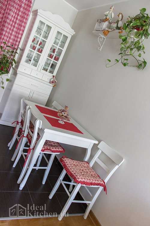 Стол и стулья – это отдельная история в таком стиле, как прованс. Они обязаны быть индивидуальными, может быть из дерева или даже кованные. Текстиль на сиденьях стульев только приветствуется. Это место – святыня для всей семьи и лучше избежать компактных конструкций и встроенных столов.