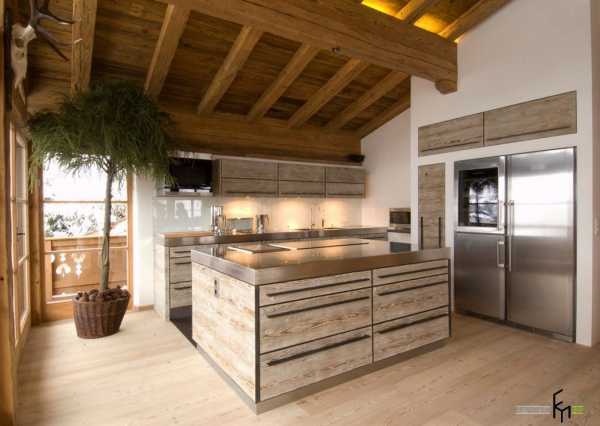 Кухни шале хорошо совмещать в интерьере кухни гостиной или другого совмещенного пространства
