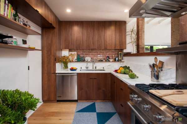 - как правило, на таких кухнях лучше обойтись без фартука, или выложить его кирпичом;