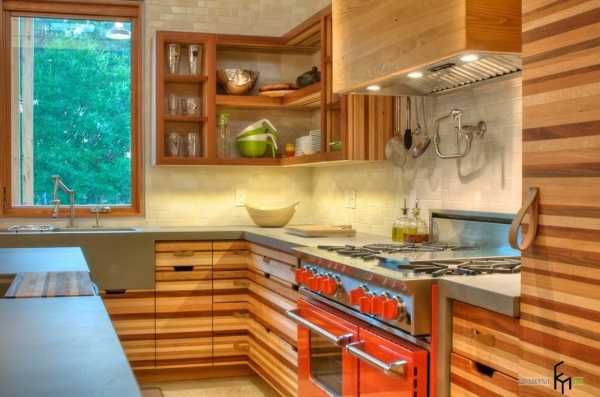 В деревянном доме лучше всего смотрится отделка из природных материалов. Это не значит, что подойдет только древесина. Возможны еще и такие варианты отделки кухни: