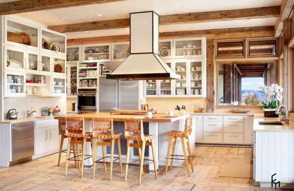 По окончании строительства деревянного дома всегда актуален вопрос выбора дизайна и отделки внутренних помещений. И тут при выборе стиля будущей кухни или кухни-гостиной возникает основная трудность, связанная со спецификой дерева как строительного материала.