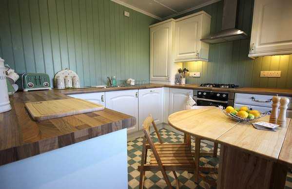Маленькая кухня характерна для дачных домиков. Здесь не обязателен большой вместительный гарнитур, т.к. не требуется такого большого количества мест хранения, как в городском доме или квартире.