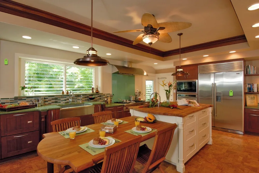 Вы достигнете того же светового потока и удивитесь тем, как мини-подвески играют с визуальным восприятием. Наконец, когда на потолке есть достаточно доступного пространства, подумайте о потолочном вентиляторе, чтобы он помогал циркуляции душного воздуха на кухне и действовал как альтернативный источник света.
