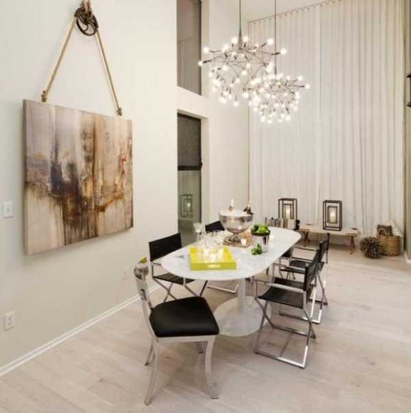 Люстра с жестким креплением к потолку зрительно приподнимает высоту помещения