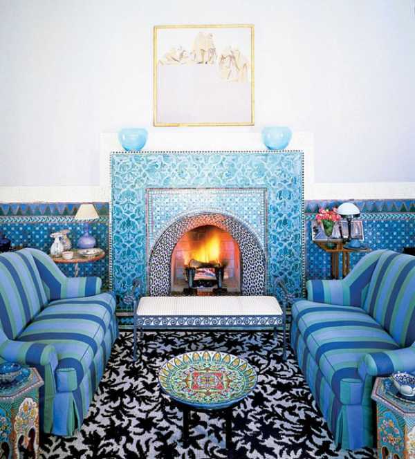 Такое смешение лежит в основе характерной для марокканских интерьеров полихромности (многоцветия). Еще одна цветовая особенность интерьеров в марокканском стиле – использование различных оттенков синего (естественных, ассоциирующихся с цветом неба) для отделки полов, стен, потолков.