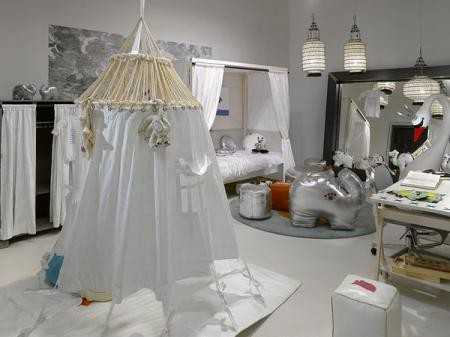 Альтернативное решение – задрапировать место для сна занавесками, закрепленными на карнизах высоко под потолком.