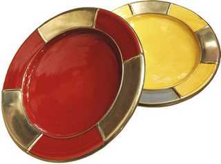 - Интерьерные тарелки и блюда из дерева и меди, которые вешаются на стены
