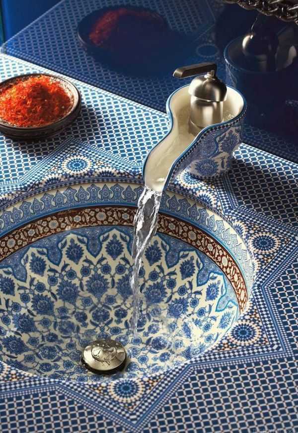 При оформлении ванной комнаты в марокканском стиле используются три основных способа разработки дизайна: