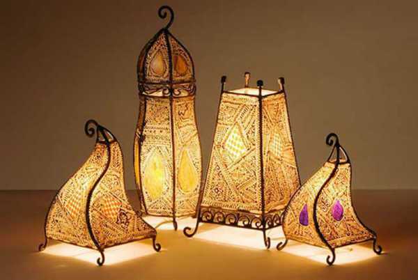 Светильники — это изюминка марокканского стиля. Они крепятся на потолке или на стене, встраиваются в арочную или стрельчатую нишу. Каждый осветительный прибор — это небольшое произведение искусства, заключённое в медный или кованый каркас, часто с разноцветными витражными вставками.