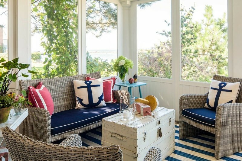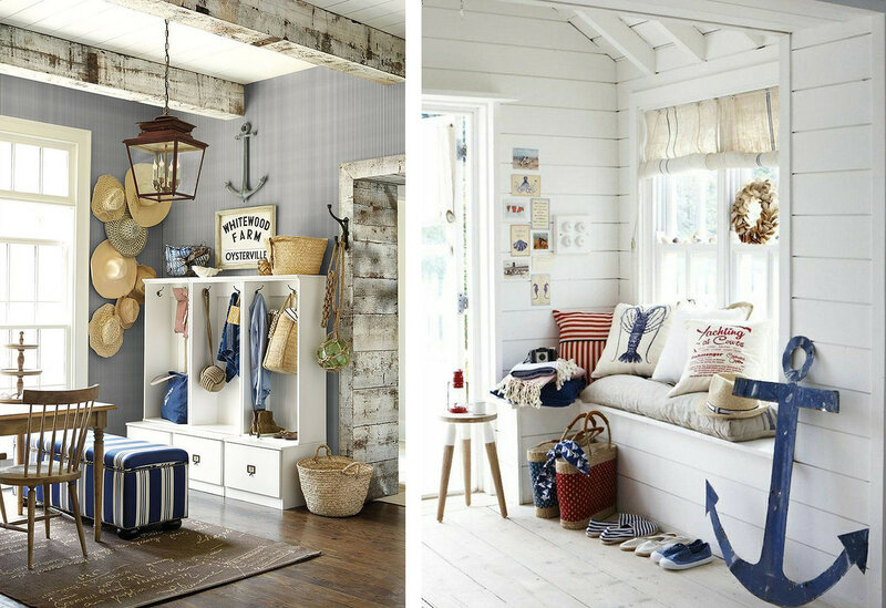 С морским стилем зачастую ассоциируются рыболовные и мореходные узнаваемые символы и предметы