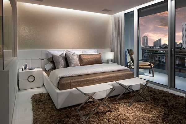 В качестве основного освещения задействуют центральный, либо точечного типа приборы. Нередко предусматривается обустройство локального света на тумбочке, либо столике.