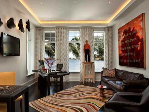 Такой подход позволяет сделать свое жилище поистине уникальным. Ведь достаточно открыть любой журнал по дизайну интерьеров, чтобы увидеть в нем стандартную узнаваемую картинку: сложные многоуровневые потолки со множеством точечных светильников (см. Современные потолочные люстры и светильники: особености и виды).