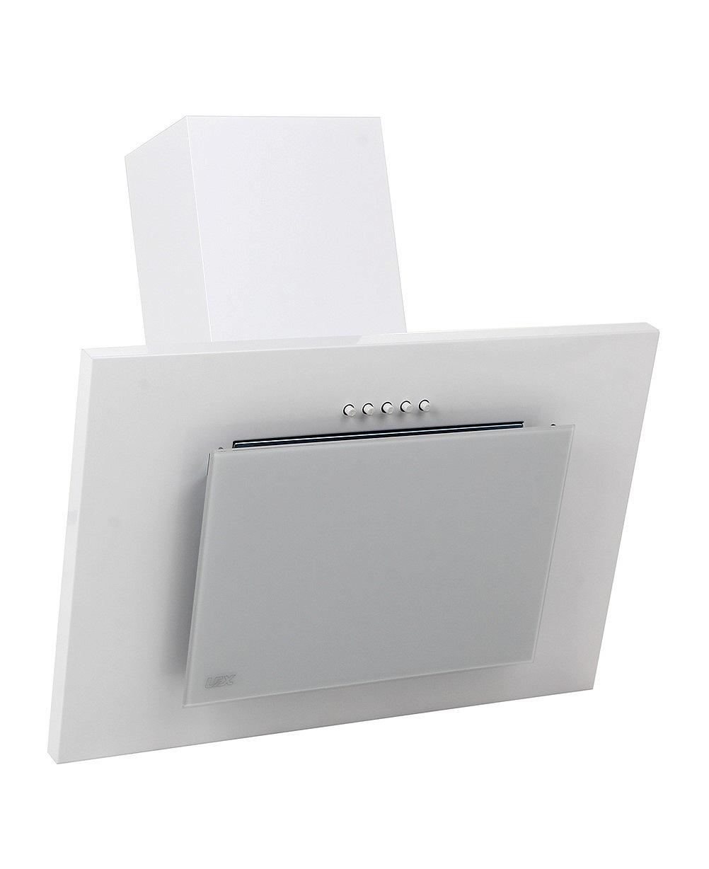 Белый оттенок наполняет кухню гармонией и визуально расширяет пространство. Чтобы интерьер не показался слишком скучным, его рекомендуется дополнять желтыми, серыми и красными вставками. Так, например, кухня с бело-желтой или бело-коричневой вытяжкой приобретет одновременно стиль и свежесть. Не нужно бояться устанавливать наклонные вытяжки ярких тонов, они могут быть дополнительно украшены рисунками или необычными узорами.