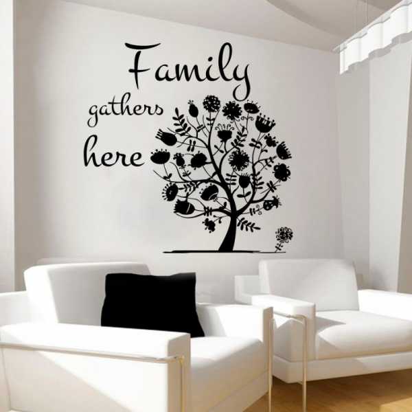 Дерево – второй по популярности мотив рисунков для интерьера своими руками. Его выполняют схематически или вполне реалистично. Таким способом декорируют прихожую с портретами предков – «генеалогическое дерево».