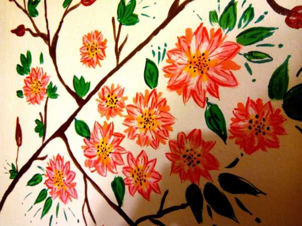 Акриловая роспись стен удобна своим нанесением, быстро высыхает и великолепно передает игру тонов и света.