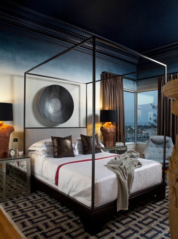 Мужской спальный интерьер оформляется черно-белыми изображениями автомобилей, мотоциклов, абстрактных движущихся механизмов. Женская спальня выполняется в более нежных тонах – предпочтительны плавные линии, стилизованные цветы.