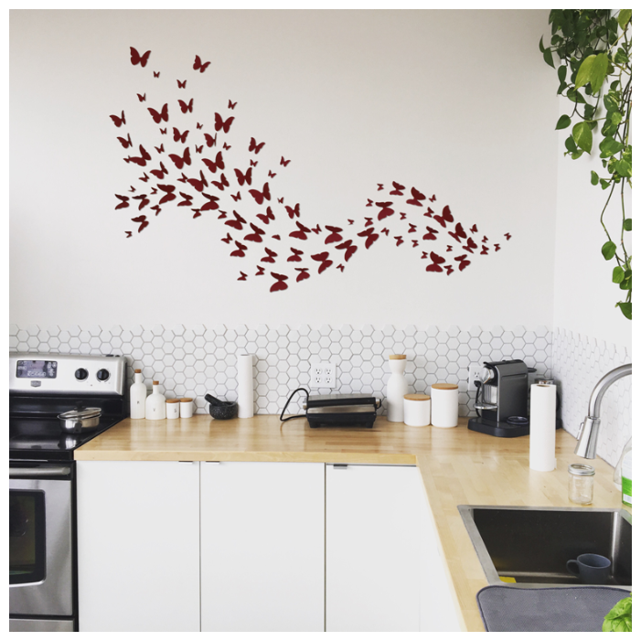 Подключите фантазию и расположите бабочек на стене на ваше усмотрение летящими стайкой в одном направлении или кружащимися в дружном хороводе.