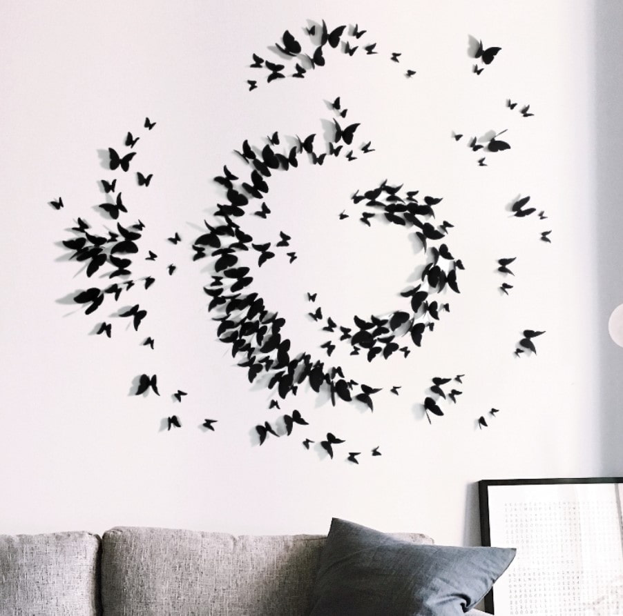 Разместите их самостоятельно, или используйте уже готовые дизайнерские идеи. Заполните всю комнату летающими красавицами, или разместите несколько в углу. В любом случае, присутствие ярких или однотонных насекомых привнесет в ваш интерьер легкость и красоту.