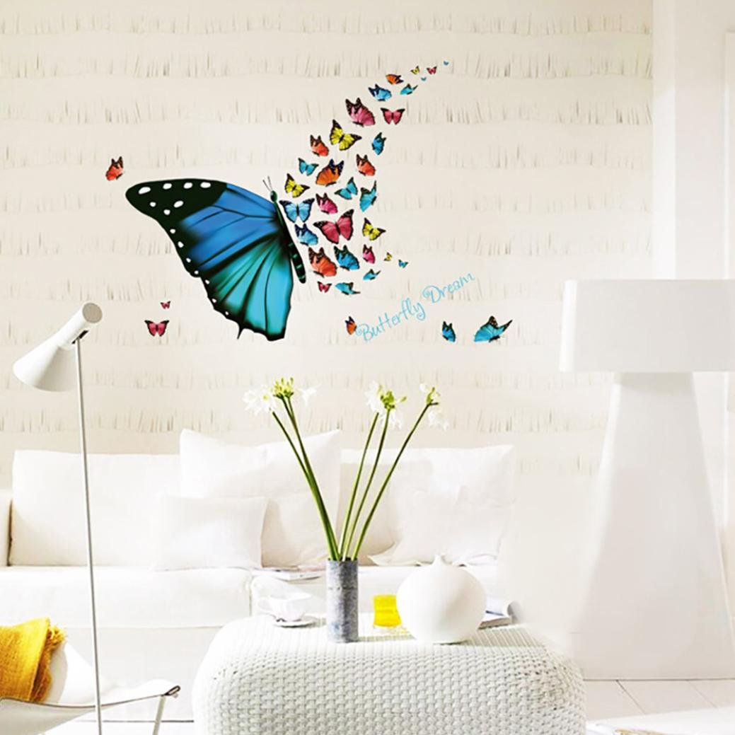 Бабочки вдохнут жизнь в самый простой интерьерСуществует несколько основных видов наклеек для стен. Самый простой из них — это гладкие виниловые наклейки различных форм и цветов. Такими наклейками можно декорировать не только стены, но и мебель. Наклейте их хаотично или придерживайтесь рисунка, предложенного производителем. Можете смешать несколько разновидностей, для большей яркости и разнообразия.