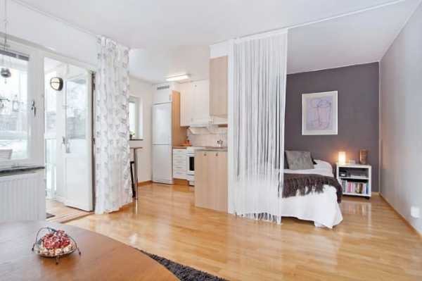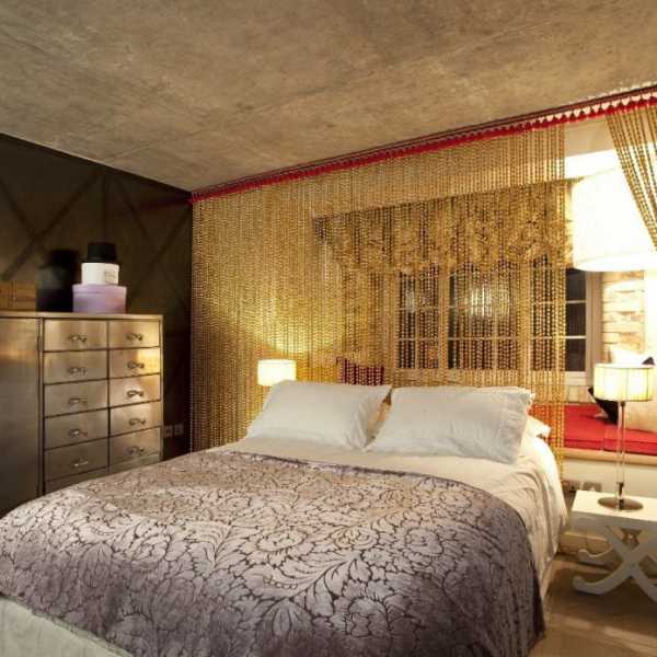 Для маленькой квартиры-студии воздушные нитяные перегородки просто находка. Они разделяют площадь на зоны, не загромождая пространства. Можно отделить столовую от кухни, или рабочую зону от гостиной, создав уютную обстановку.