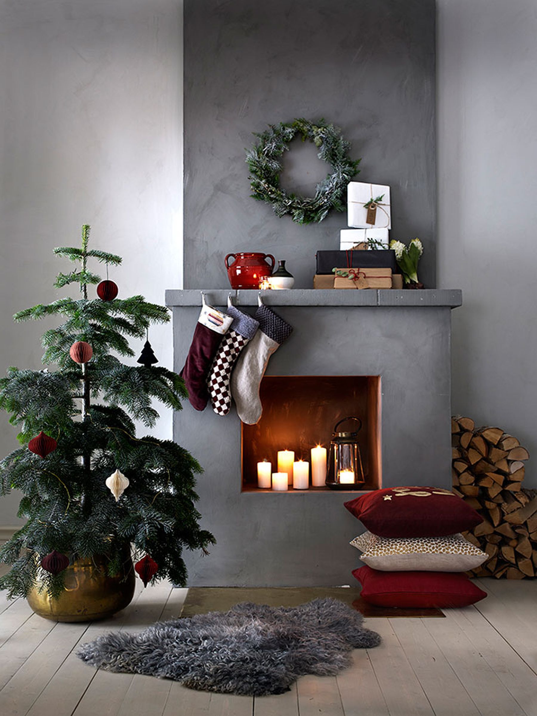 Оформление камина на Новый год